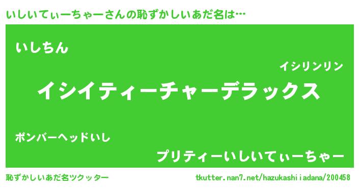 | 女子向けラノベタイトル風あだ名 | 『いしいてぃーちゃーなんてお断りですっ。』 |