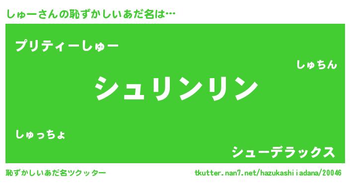 | 意味不明あだ名 | 『とにかく怪しいしゅー』『自称しゅー』 |