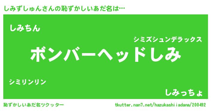 | 意味不明あだ名 | 『住所不定無職しみずしゅん(86歳)』 |