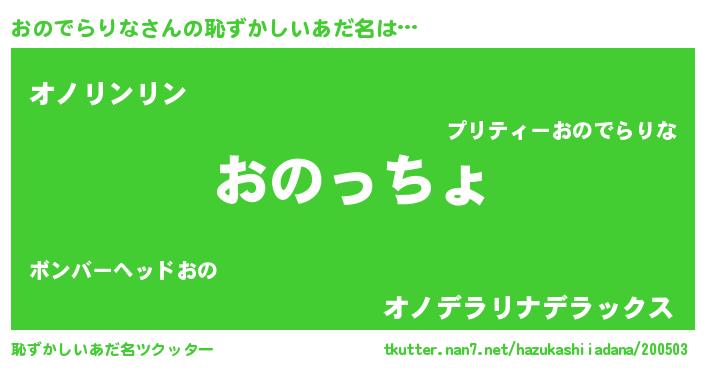 | 意味不明あだ名 | 『おのでらりなフォーエバー』 |