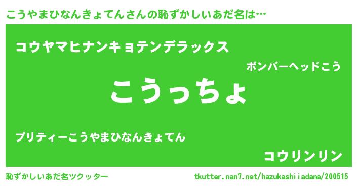 | ファンタジー風あだ名 | 『エターナルコウヤマヒナンキョテンー』 |