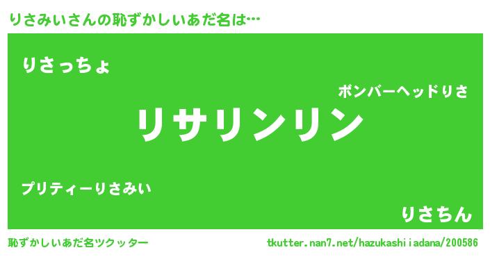 | ヘコむあだ名 | 『りさを』『酢こんぶ』『りさにー』 |