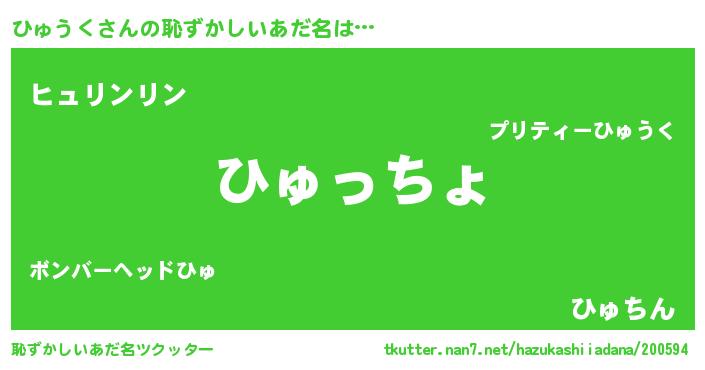 | 意味不明あだ名 | 『ひゅうくフォーエバー』 |