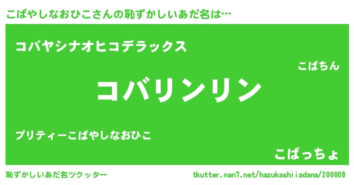 | 意味不明あだ名 | 『とにかく怪しいこばやしなおひこ』 |