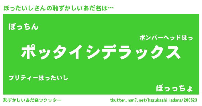 | 意味不明あだ名 | 『自称ぽったいし』『永久保存ぽったいし』 |