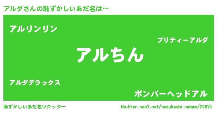 | 意味不明あだ名 | 『永久保存アルダ』『ヨモギ科アルダ属』 |