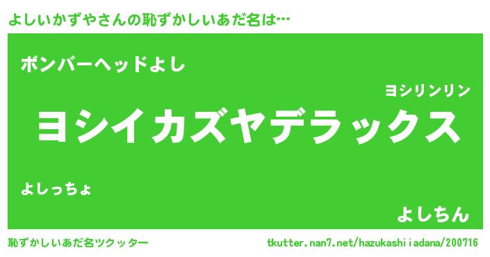 | ヘコむあだ名 | 『よしいかずや(笑)』『よしお』 |