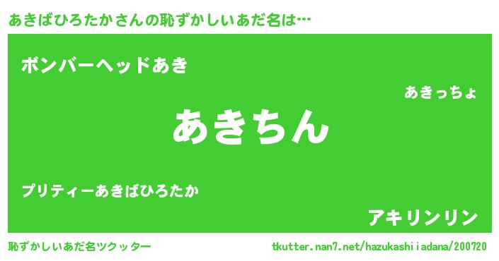 | 意味不明あだ名 | 『永久保存あきばひろたか』 |