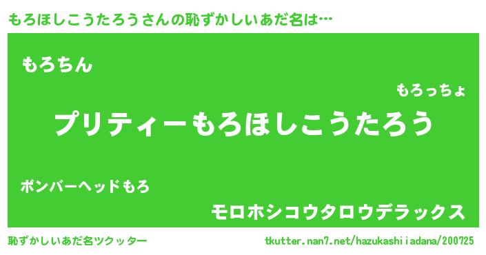 | ヘコむあだ名 | 『もろにー』『もろほしこうたろう(苦笑)』 |
