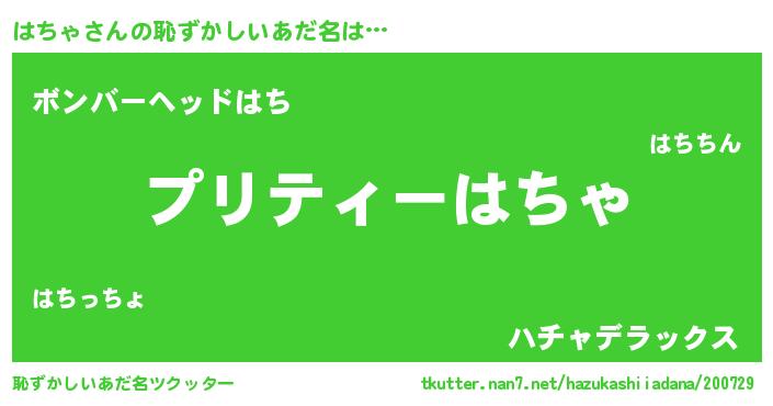 | 意味不明あだ名 | 『ペロリンはちゃ』『自称はちゃ』 |