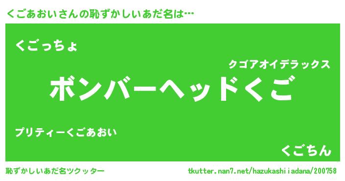 | 欧米人風あだ名 | 『ダニエルくごあおい』 |