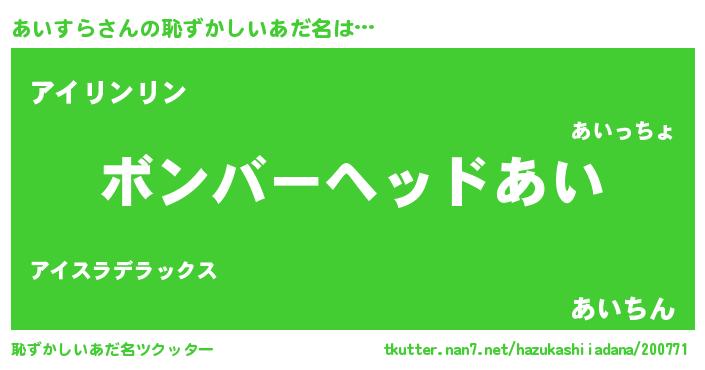 | ヒーロー風カッコイイあだ名 | 『友情の使者あいすら』『暗黒騎士アイ』 |
