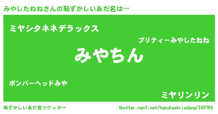 | 意味不明あだ名 | 『永久保存みやしたねね』 |