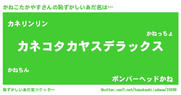 | 欧米人風あだ名 | 『ケンブリッジかねこたかやす』 |