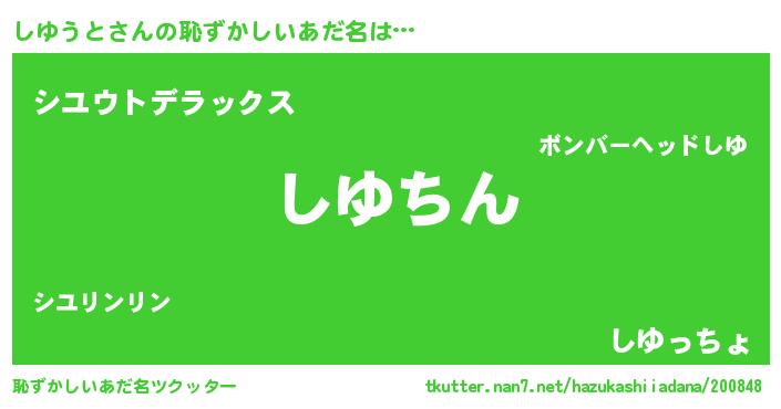 | 意味不明あだ名 | 『ニラ科しゆうと属』『永久保存しゆうと』 |