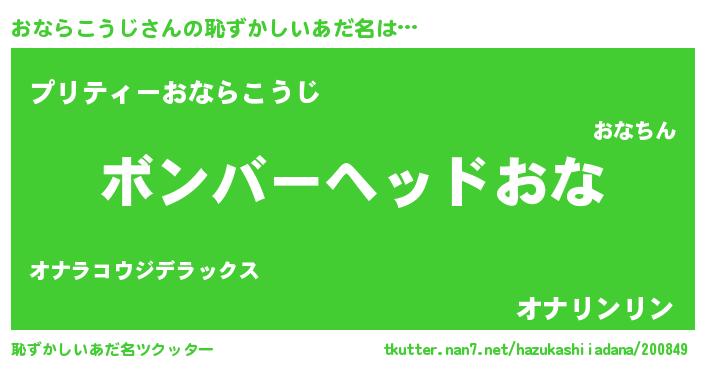 | 男性向けラノベタイトル風あだ名 | 『ノーゲーム・ノーオナラコウジ』 |