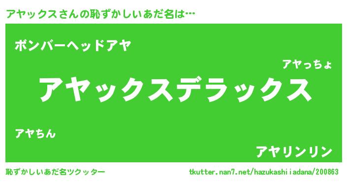 | 意味不明あだ名 | 『自称アヤックス』 |