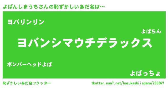 | 意味不明あだ名 | 『自称よばんしまうち』 |