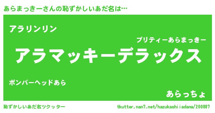 | 意味不明あだ名 | 『住所不定無職あらまっきー(53歳)』 |