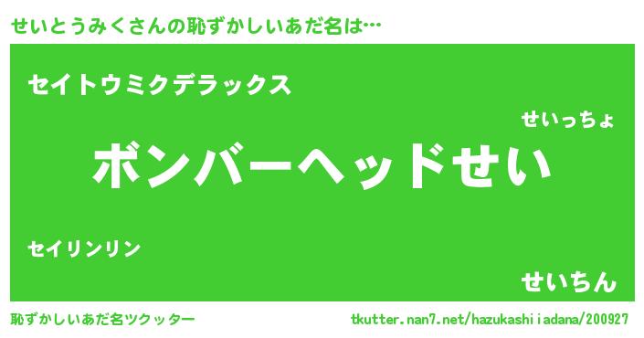 | ヒーロー風カッコイイあだ名 | 『正義の使者せいとうみく』 |