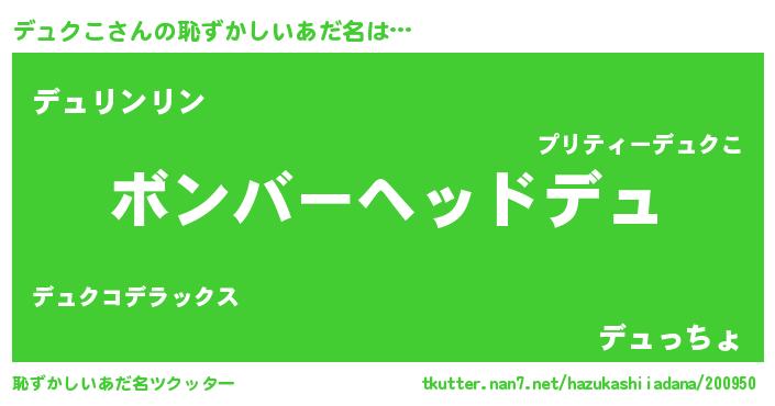 | 意味不明あだ名 | 『住所不定無職デュクこ(2歳)』 |