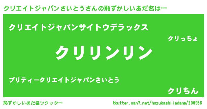 | 意味不明あだ名 | 『とにかく怪しいクリエイトジャパンさいとう』 |