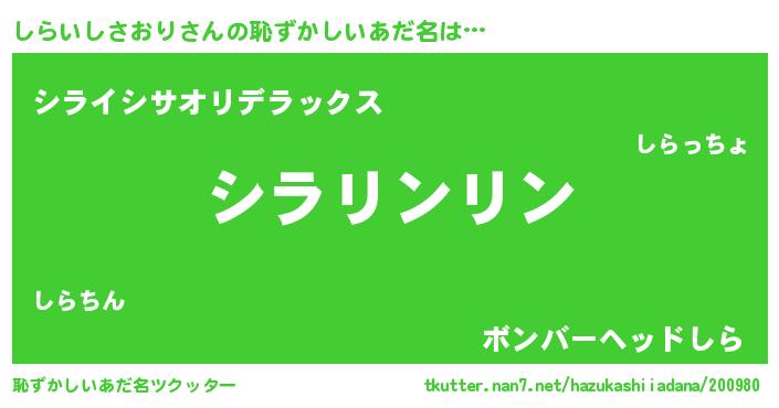 | 意味不明あだ名 | 『とにかく怪しいしらいしさおり』 |