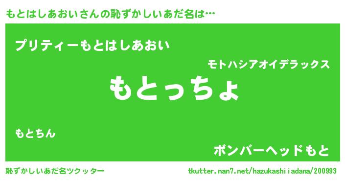| 意味不明あだ名 | 『もとはしあおいフォーエバー』 |