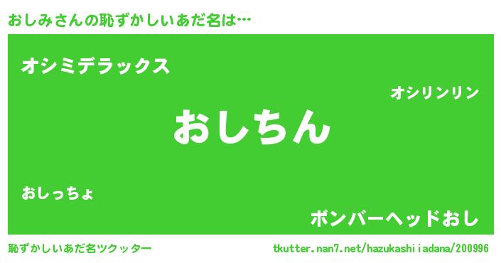 | 意味不明あだ名 | 『永久保存おしみ』『自称おしみ』 |