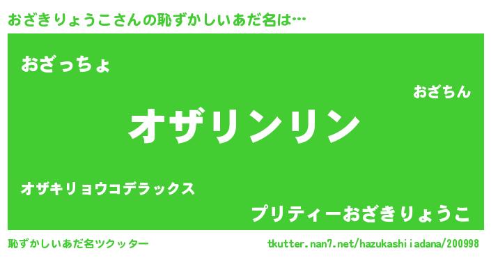 | ポケモン風あだ名 | 『オーザイ』『ヒオザキリョウコ』 |