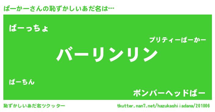 | ヘコむあだ名 | 『ばーを』『つくし』『ばーにー』 |
