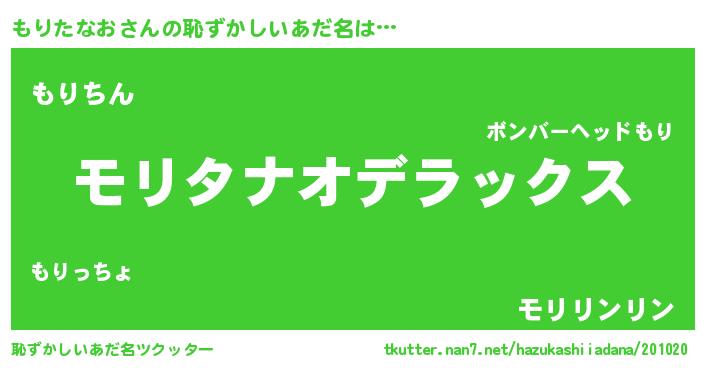 | ヒーロー風カッコイイあだ名 | 『仮面モリダー』『ネオモリタナオ』 |