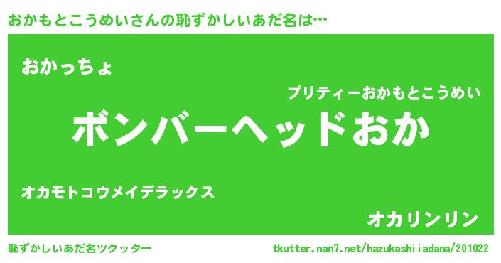 | 胡散臭い通販商品みたいなあだ名 | 『100人中100人が認めたマグネット磁石…その名も「おかもとこうめい」』 |