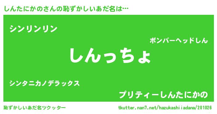 | ポケモン風あだ名 | 『シンタダネ』『ヒシンタニカノ』 |