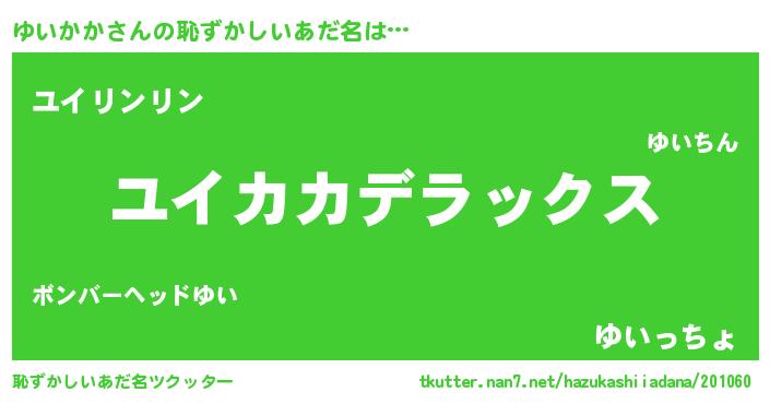 | 意味不明あだ名 | 『自称ゆいかか』『ゆいかかフォーエバー』 |