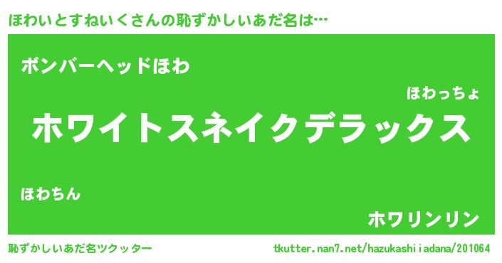 | 女子向けラノベタイトル風あだ名 | 『ほわいとすねいくなんてお断りですっ。』 |