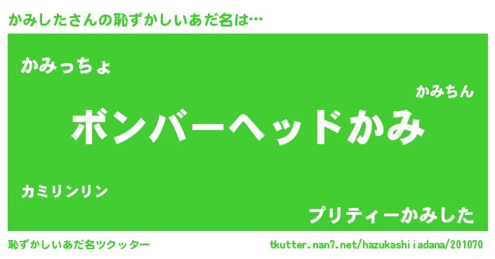 | ヒーロー風カッコイイあだ名 | 『天空の使者かみした』『ネオカミシタ』 |