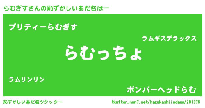 | ヒーロー風カッコイイあだ名 | 『仮面ラムダー』『ウルトラらむぎすマン』 |