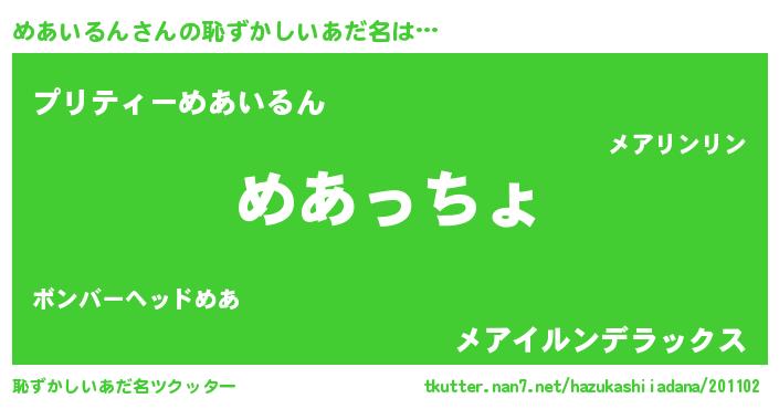 | 欧米人風あだ名 | 『めあいるんクリステル』 |