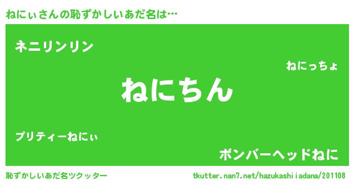 | 意味不明あだ名 | 『永久保存ねにぃ』『しいたけ科ねにぃ属』 |