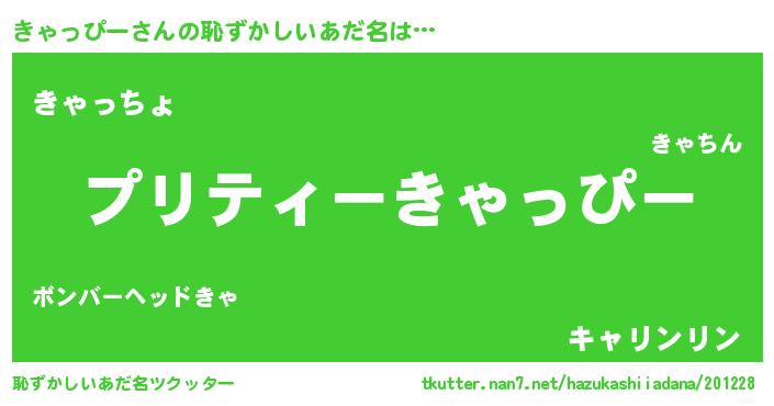 | 胡散臭い通販商品みたいなあだ名 | 『モテモテ間違いなし水晶球…その名も「きゃっぴー」』 |