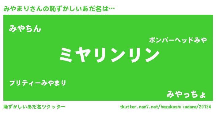 | ヘコむあだ名 | 『みやっぺ』『みやまり(笑)』 |