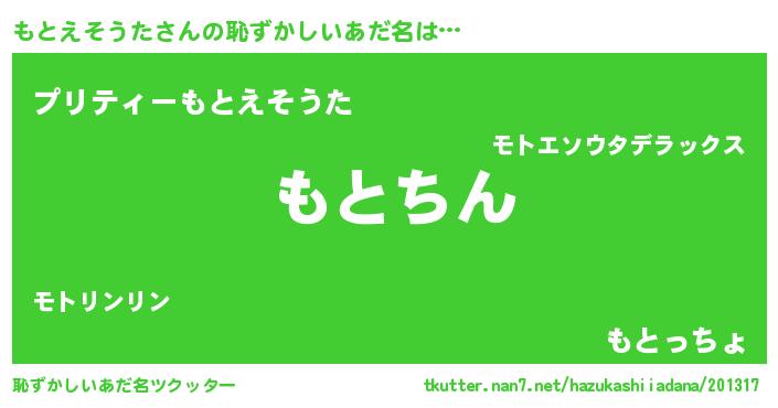 | ヘコむあだ名 | 『もとえそうた(苦笑)』『もとふぇ~』 |