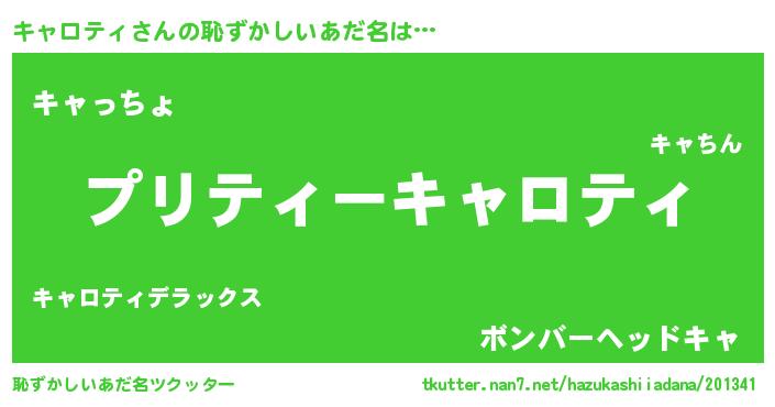 | 女子向けラノベタイトル風あだ名 | 『乙女ゲームの破滅フラグしかない悪役キャロティに転生してしまった…』 |