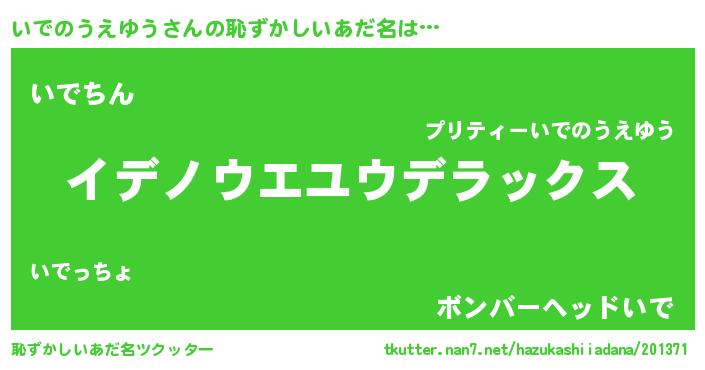 | ヘコむあだ名 | 『いでのうえゆう(笑)』『いでにゅー』 |