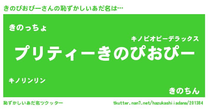 | 男性向けラノベタイトル風あだ名 | 『きのぴおぴーの憂鬱』 |