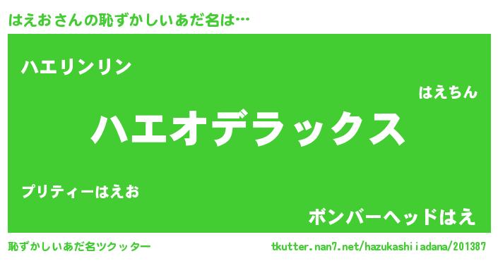| 意味不明あだ名 | 『自称はえお』『とにかく怪しいはえお』 |