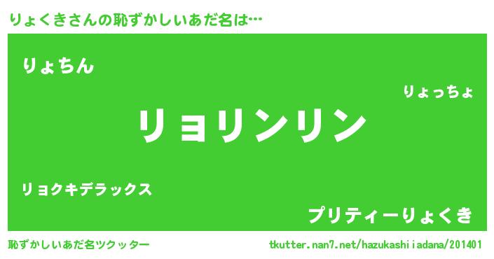 | ヘコむあだ名 | 『りょっちょ』『りょくき(笑)』 |