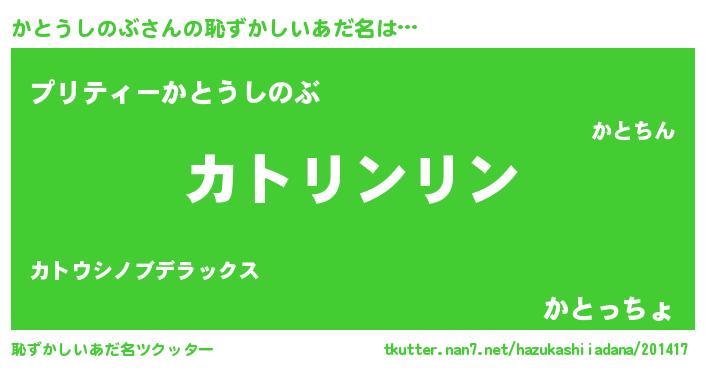 | 意味不明あだ名 | 『とにかく怪しいかとうしのぶ』 |