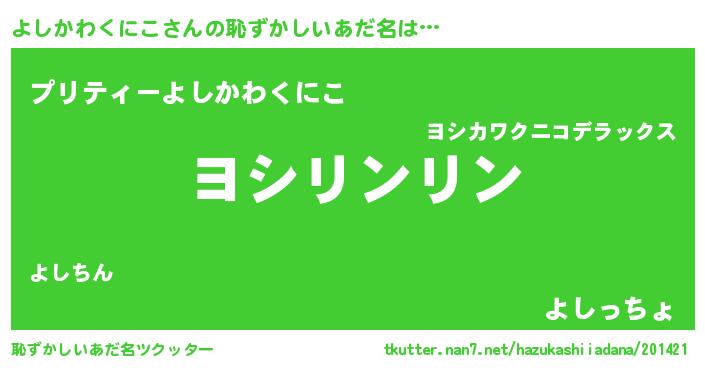 | ポケモン風あだ名 | 『ヒヨシカワクニコ』『ヨーシイ』 |